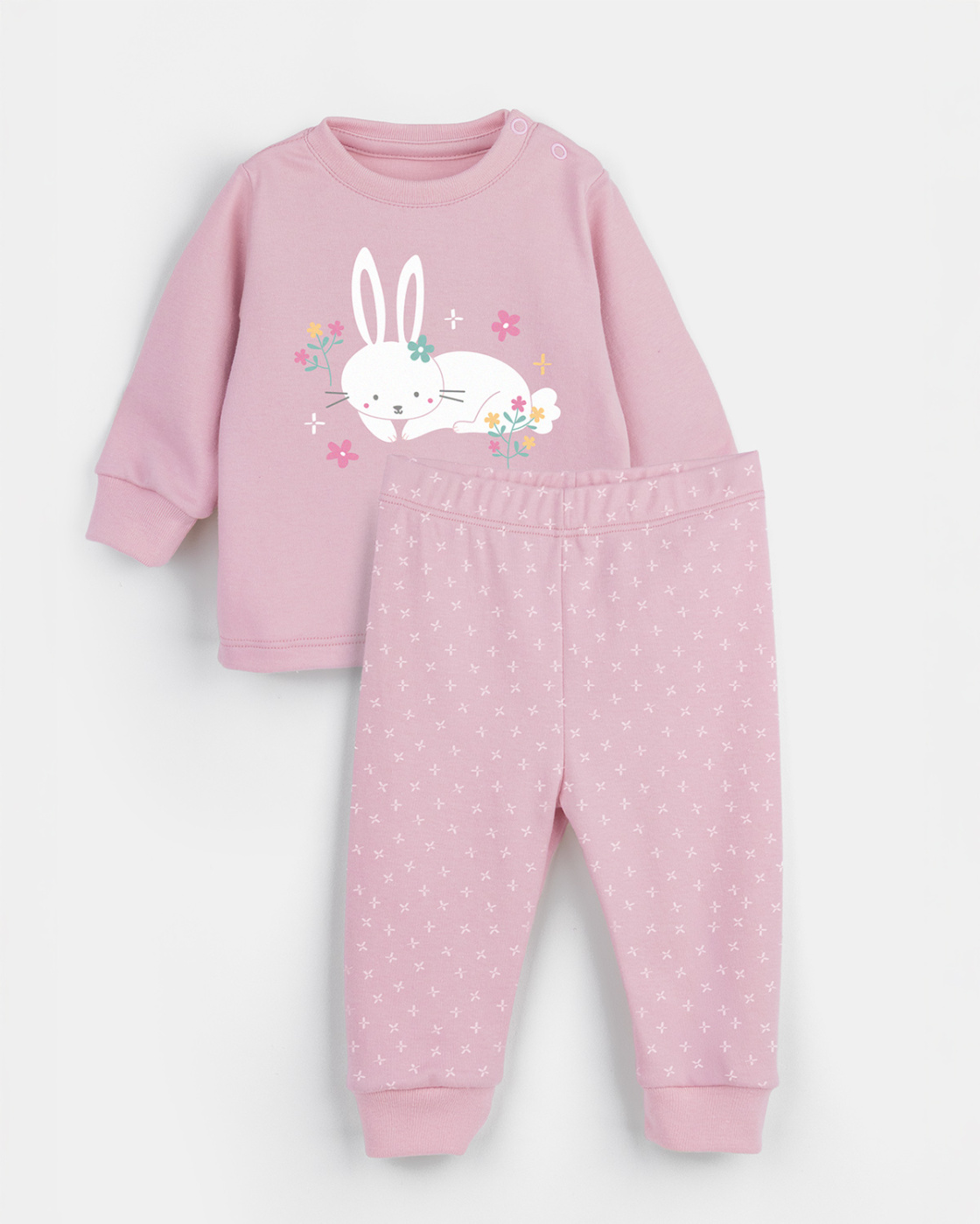Conjunto de pijama para bebé en dos piezas. Ideal para brindar comodidad y libertad de movimiento durante el descanso diario