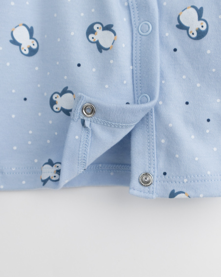 Este conjunto de 3 piezas para bebé incluye camiseta manga corta, casaca cruzada y pantalón. Elaborado en tejidos ligeros y delicados con la piel, permite vestir y cambiar al bebé con facilidad. Una opción práctica y cómoda para el día a día, brindando abrigo y libertad de movimiento desde sus primeros meses.