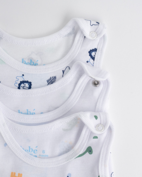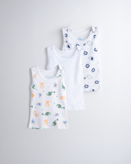 Set de 3 camisetas sin manga para bebé, en algodón suave. Colores vibrantes y cómodos para acompañar cada aventura diaria con total frescura.
