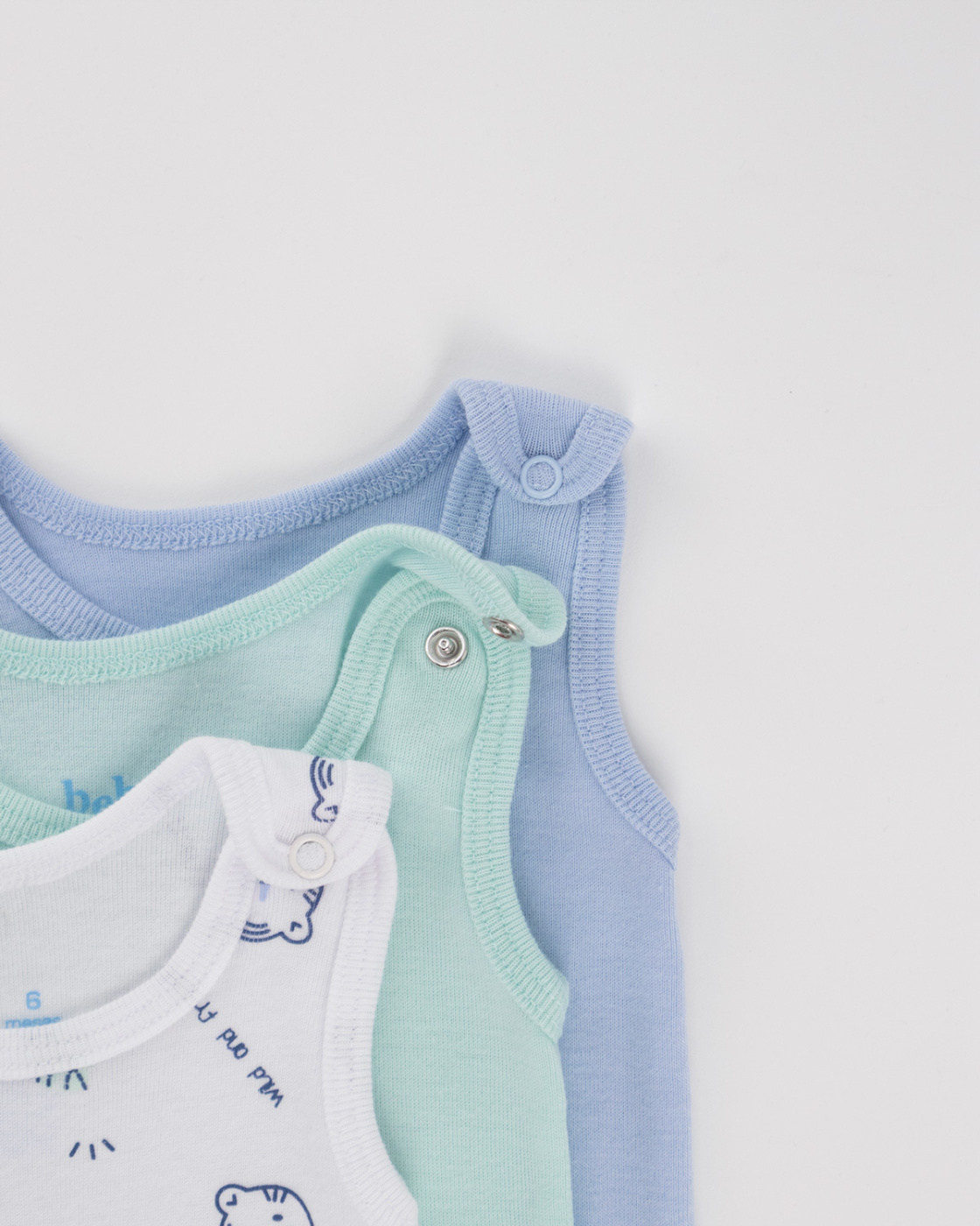 Pack de 3 camisetas sin manga para bebé, suaves, frescas y coloridas. Ideales para días cálidos, su diseño brinda libertad de movimiento en cada momento.