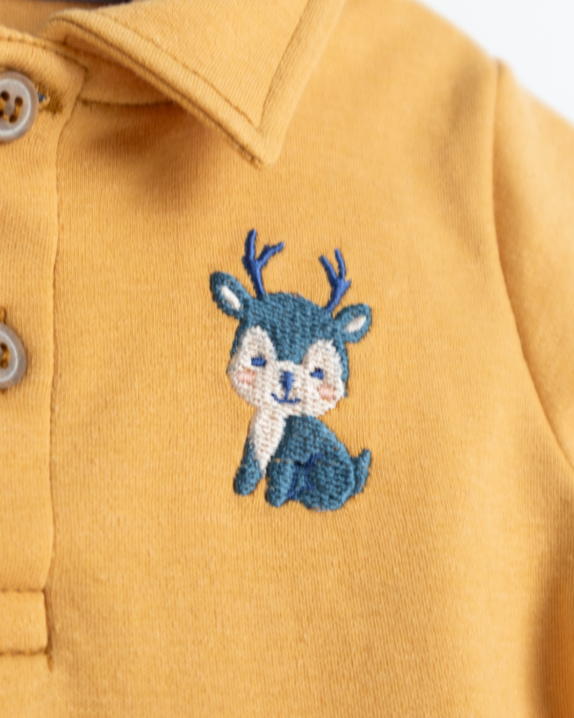 Conjunto para bebé: body polo con diseño bordado y bermuda denim con ajuste cómodo. Un look práctico y encantador para cualquier ocasión.