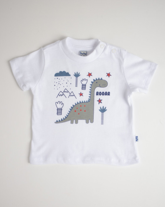 Camiseta de bebé niño, disponible en varios colores y estampados. Fabricada con un cómodo blend de algodón y poliéster, ideal para el uso diario.