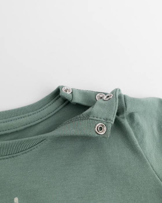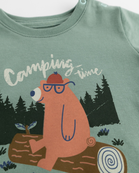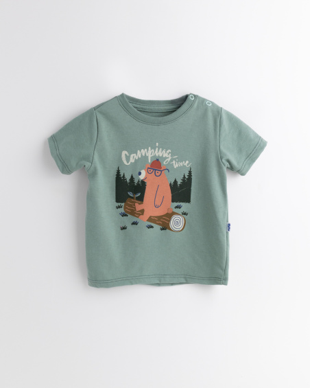 Esta camiseta de bebé niño combina suavidad y durabilidad. Su composición es 65% algodón y 35% poliéster. Cada camiseta viene en un color diferente, con estampados que pueden variar, asegurando que cada pieza sea única. Una prenda práctica y cómoda, perfecta para las actividades diarias de tu pequeño.