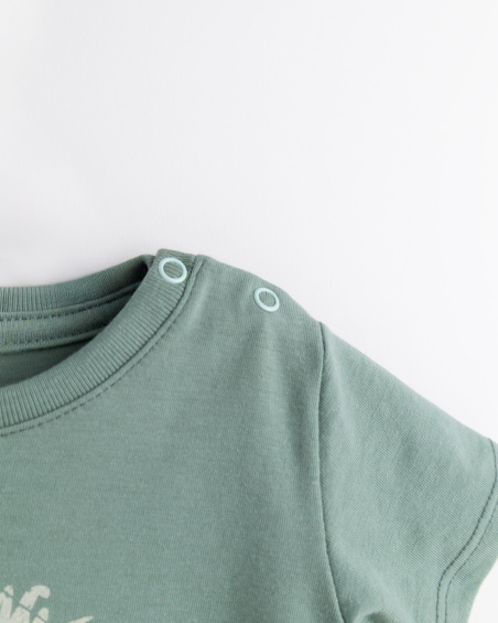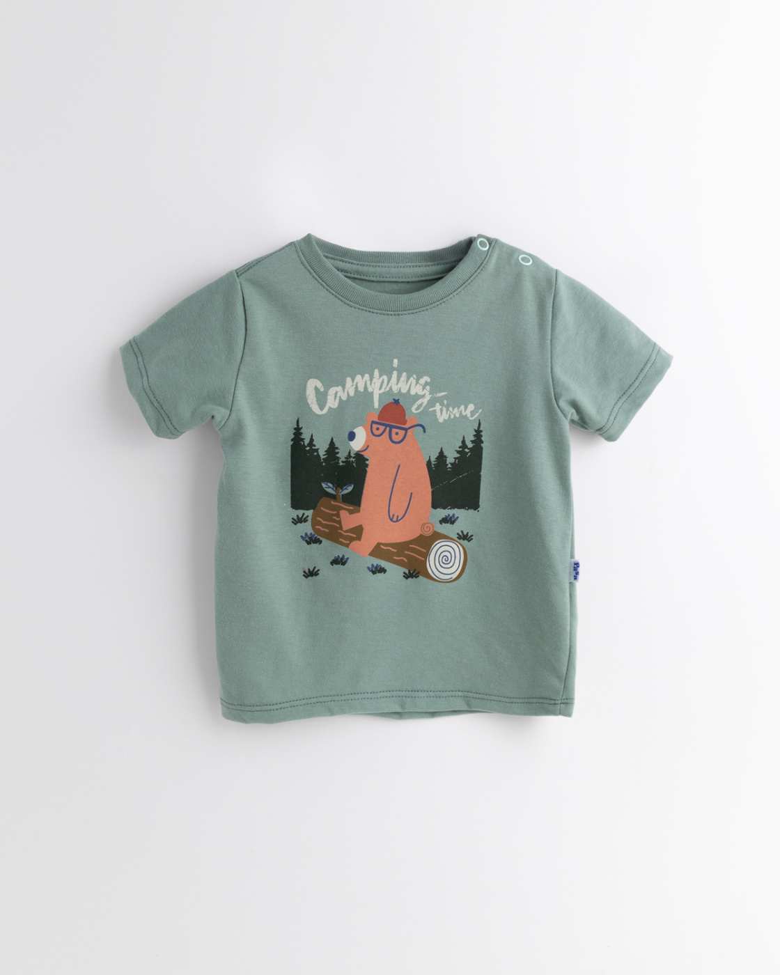 Camiseta de bebé niño, disponible en varios colores y estampados. Fabricada con un cómodo blend de algodón y poliéster, ideal para el uso diario.