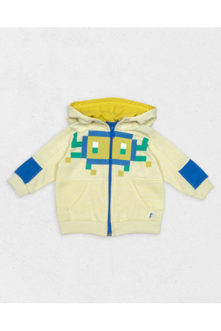 Sudadera con capucha para bebé. Confeccionado en tejido suave y cálido, es perfecto para mantener a tu pequeño abrigado en los días frescos. Su diseño moderno y divertido añade un toque de estilo a cualquier conjunto, ideal para combinar con jeans o pantalones casuales. Un suéter cómodo y atractivo para el día a día.