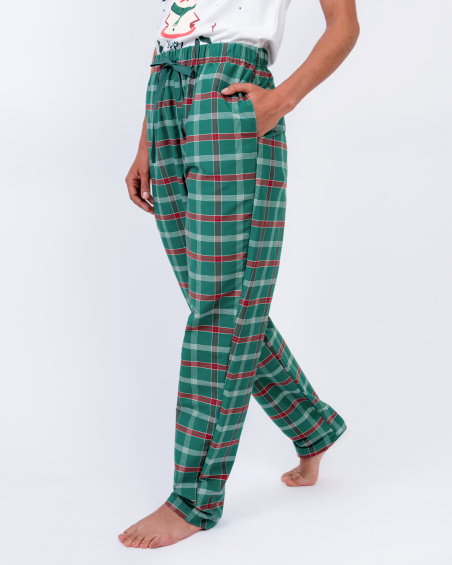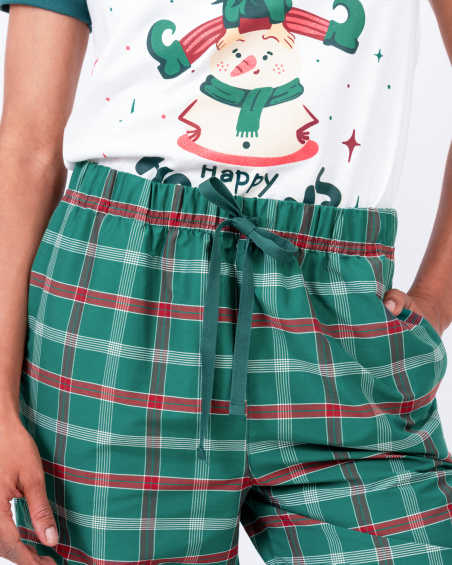 Pijama Navideña de Mujer con Camiseta Estampada y Pantalón a Cuadros Verde
