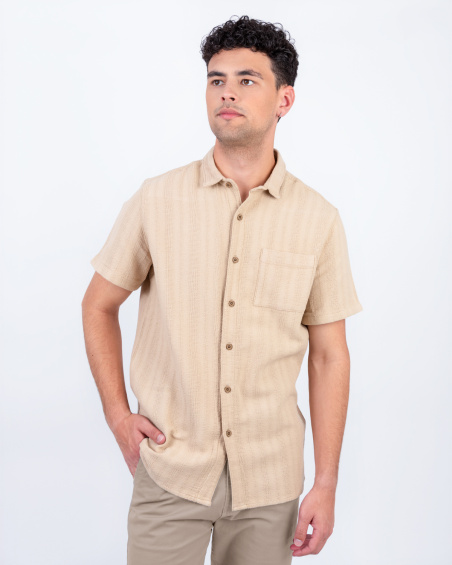 Camisa manga corta para hombre, ligera y cómoda, con textura suave y calce relajado ideal para días cálidos o looks casuales.