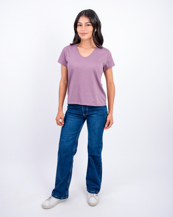 Camiseta cuello V para mujer, cómoda y versátil. Perfecta para looks casuales y frescos.