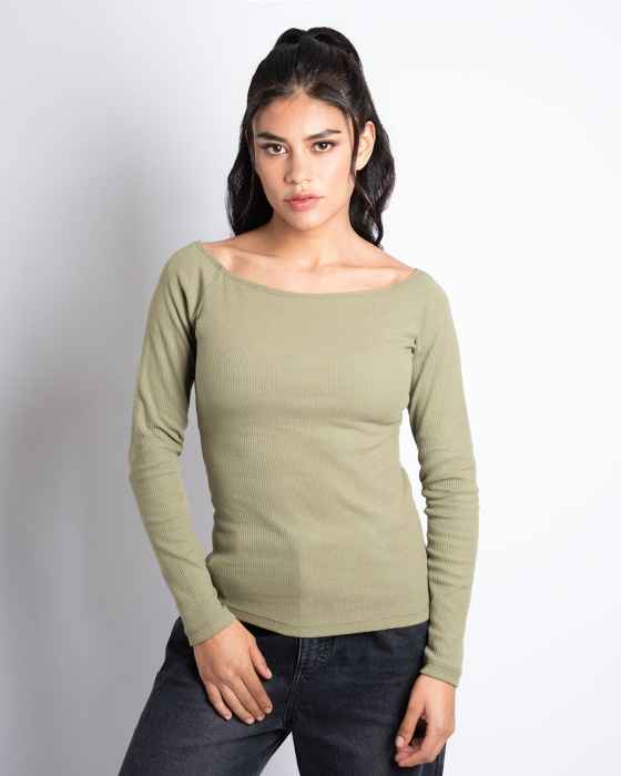 Camiseta manga larga para mujer con cuello amplio, perfecta para días frescos o para usar bajo otras prendas. Está hecha en tela acanalada, suave al tacto y con buena elasticidad para mayor comodidad. Su diseño clásico y femenino es ideal para el día a día y combina fácilmente con jeans, pantalones o faldas.