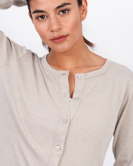 Este suéter abierto para mujer es un básico cómodo y versátil que complementa distintos estilos. Su tela suave, botones frontales y ajuste relajado lo hacen ideal para llevar sobre camisetas, tops o blusas. Perfecto para días frescos o para dar un toque casual y práctico a tu outfit. Una prenda esencial que ofrece comodidad y estilo en cada uso.