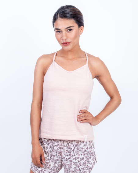 Pijama para mujer compuesta por top de tirantes y short estampado. Su tela suave y fresca acompaña tus movimientos con comodidad, ideal para descansar mejor o relajarte en casa. El short con diseño gráfico añade un toque moderno a un conjunto pensado para sentirse bien en cualquier momento.