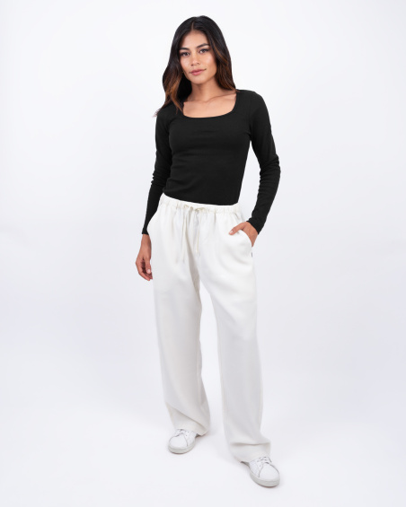 Este pantalón tipo playa es ideal para esos días en los que solo quieres sentirte relajada. Su corte amplio y tela suave lo hacen perfecto para acompañarte a donde vayas, sin complicaciones.