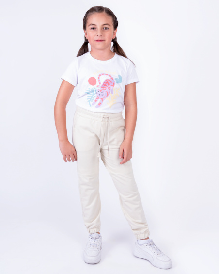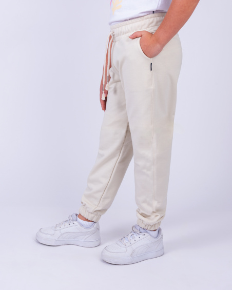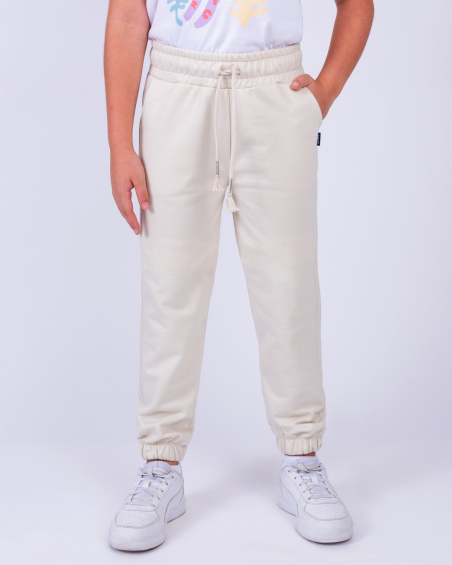 Jogger para niña con cintura ajustable, bolsillos laterales y botamangas elásticas para mayor comodidad.