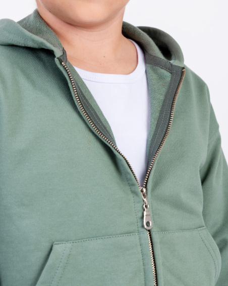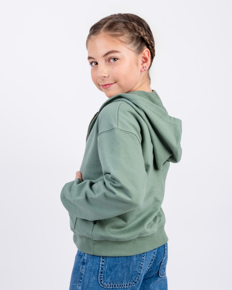 Sudadera con capucha para niña con cierre frontal y bolsillos laterales que le dan un estilo práctico y cómodo para el día a día. Su diseño clásico permite que sea fácil de combinar con diferentes prendas, ya sea para el colegio, actividades al aire libre o para estar en casa. Ideal para usar en cualquier temporada, brindando versatilidad y confort en todo momento.