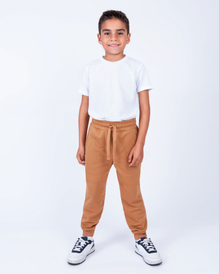 Jogger para niño con cintura ajustable y tela cómoda, ideal para el día a día y fácil de combinar.