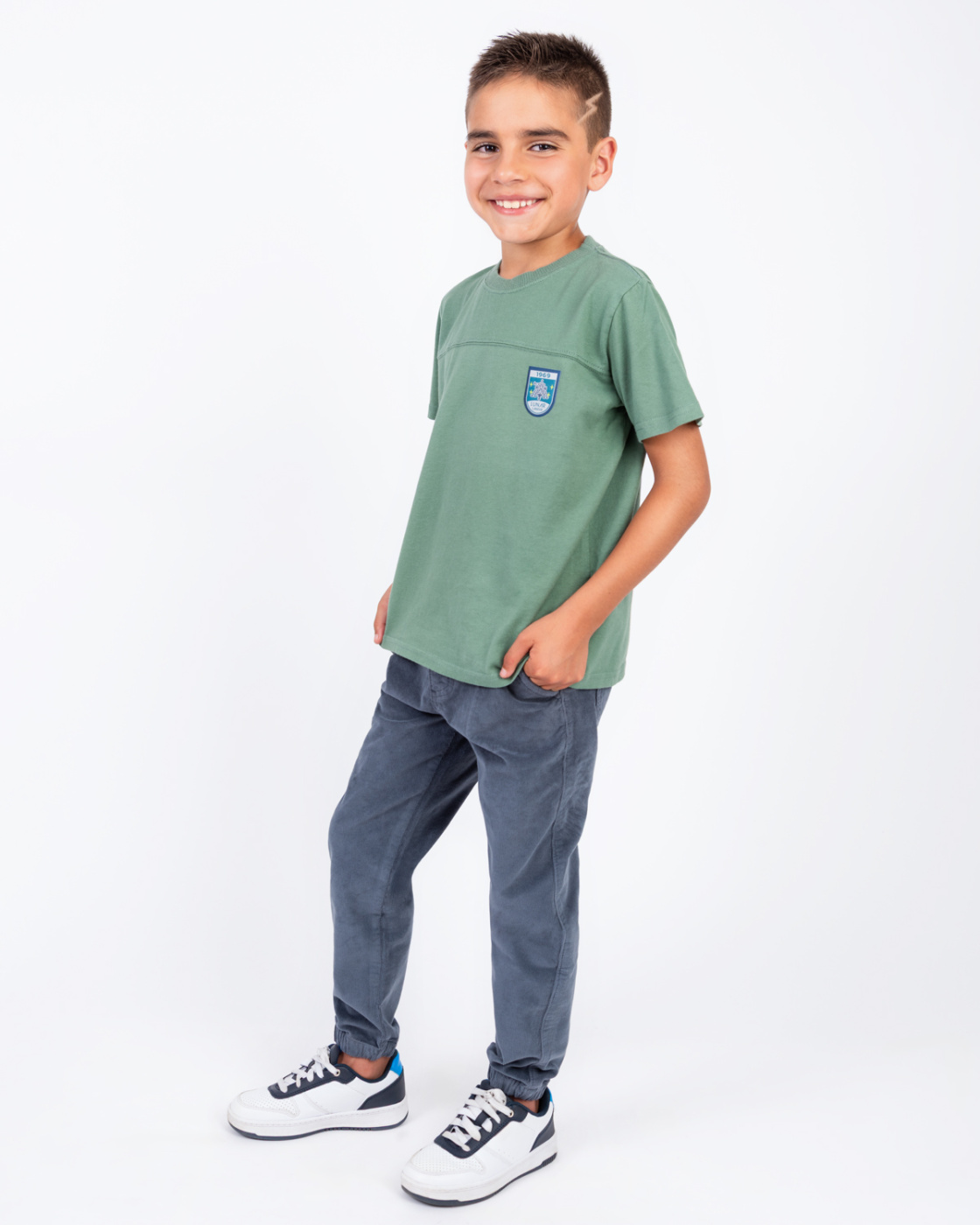 Jogger pana para niño, cómodo y abrigado, con cintura ajustable y bolsillos laterales.