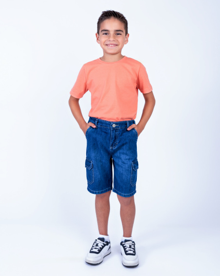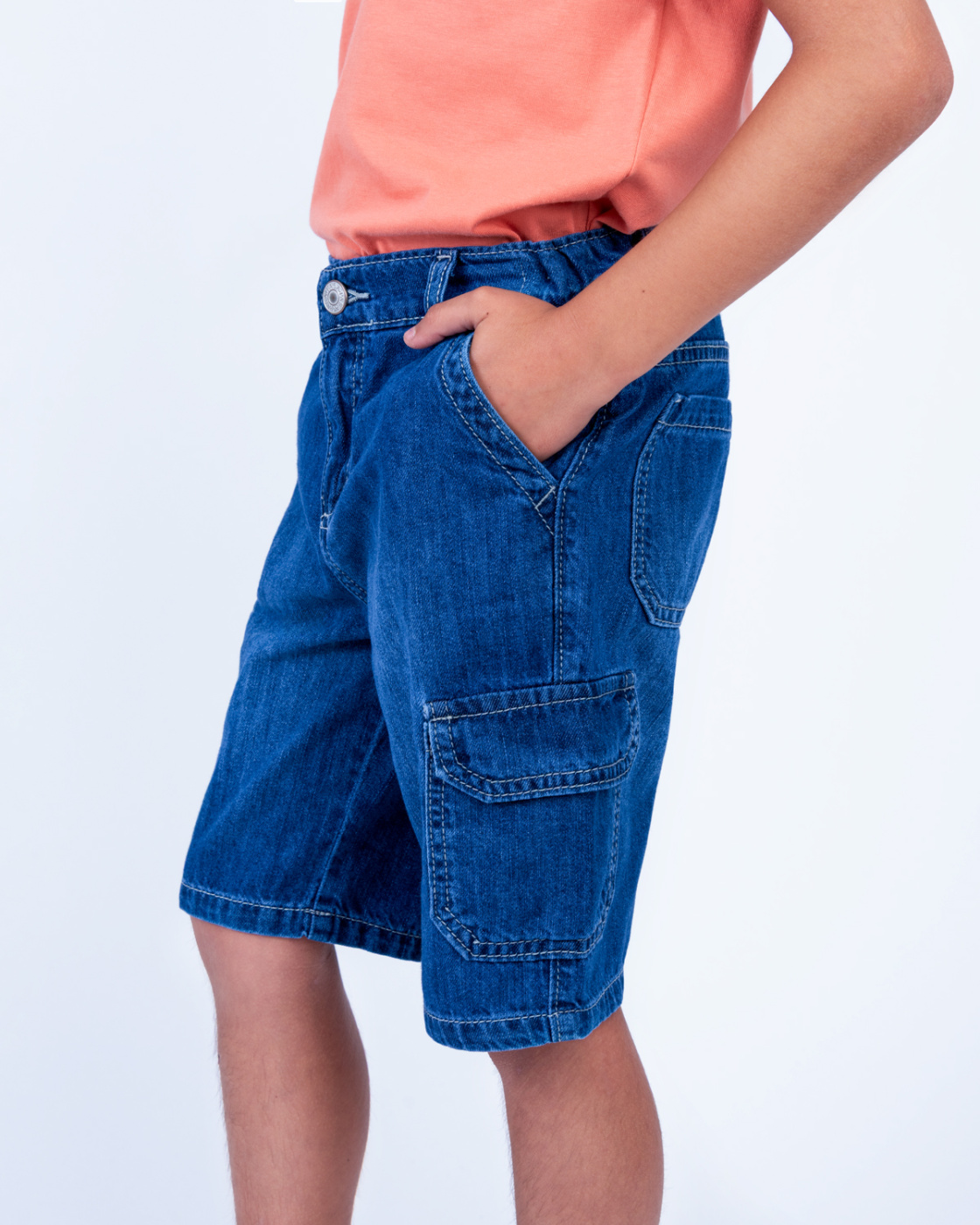 Bermuda denim para niño con bolsillos laterales. Cómoda, resistente para un look ligero y casual.