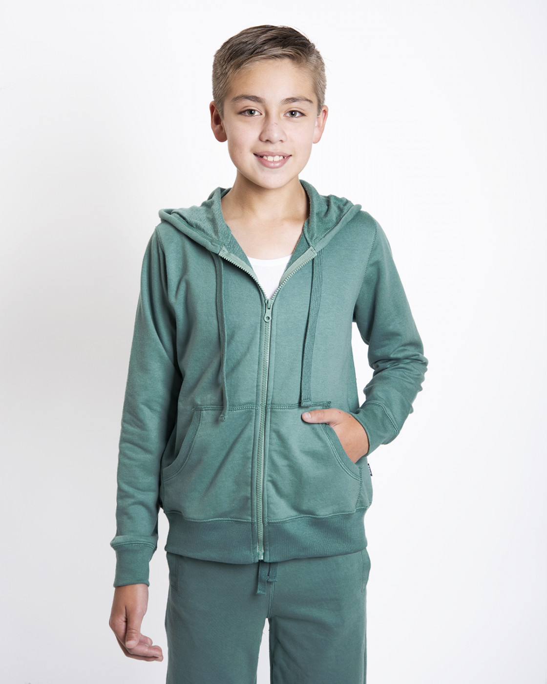 Casaca con Capucha para niño. Fabricada en tejido suave y cálido, ideal para mantener la comodidad en días frescos. Cuenta con cierre frontal y bolsillos estilo canguro, además de cordones ajustables en la capucha para un ajuste personalizado. Perfecta para el día a día o actividades al aire libre.