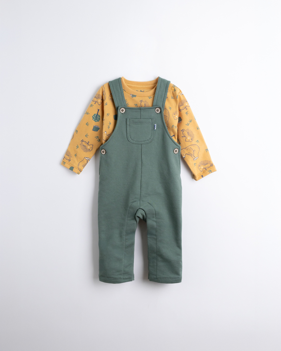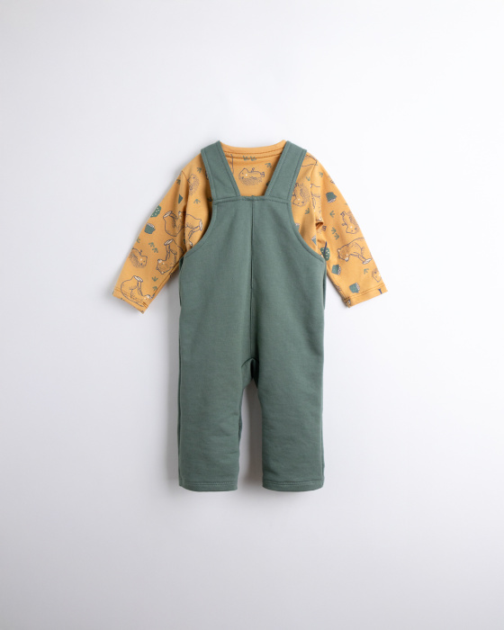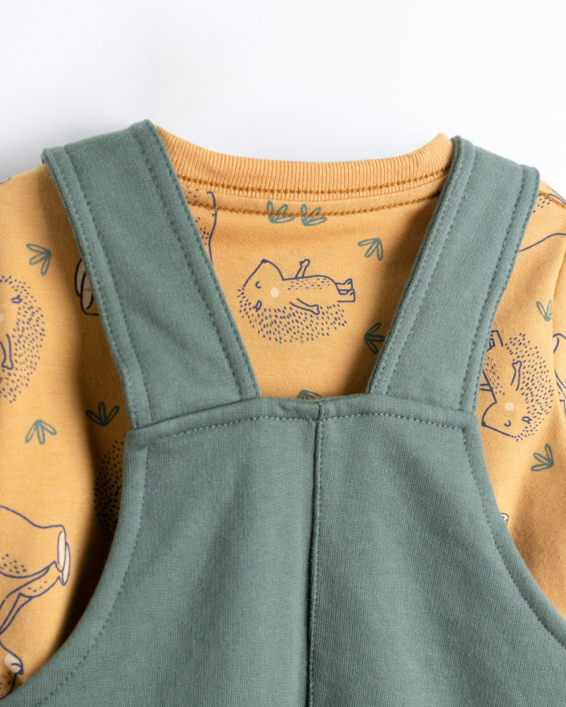 Conjunto de 2 piezas para bebé compuesto por un overol y camiseta manga larga. Cómodo, delicado con la piel y perfecto para acompañar cada movimiento